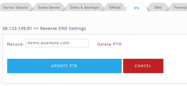 You can manage rDNS for your IPs from your virtual server’s IPs tab, in the manage.togglebox.com client area.